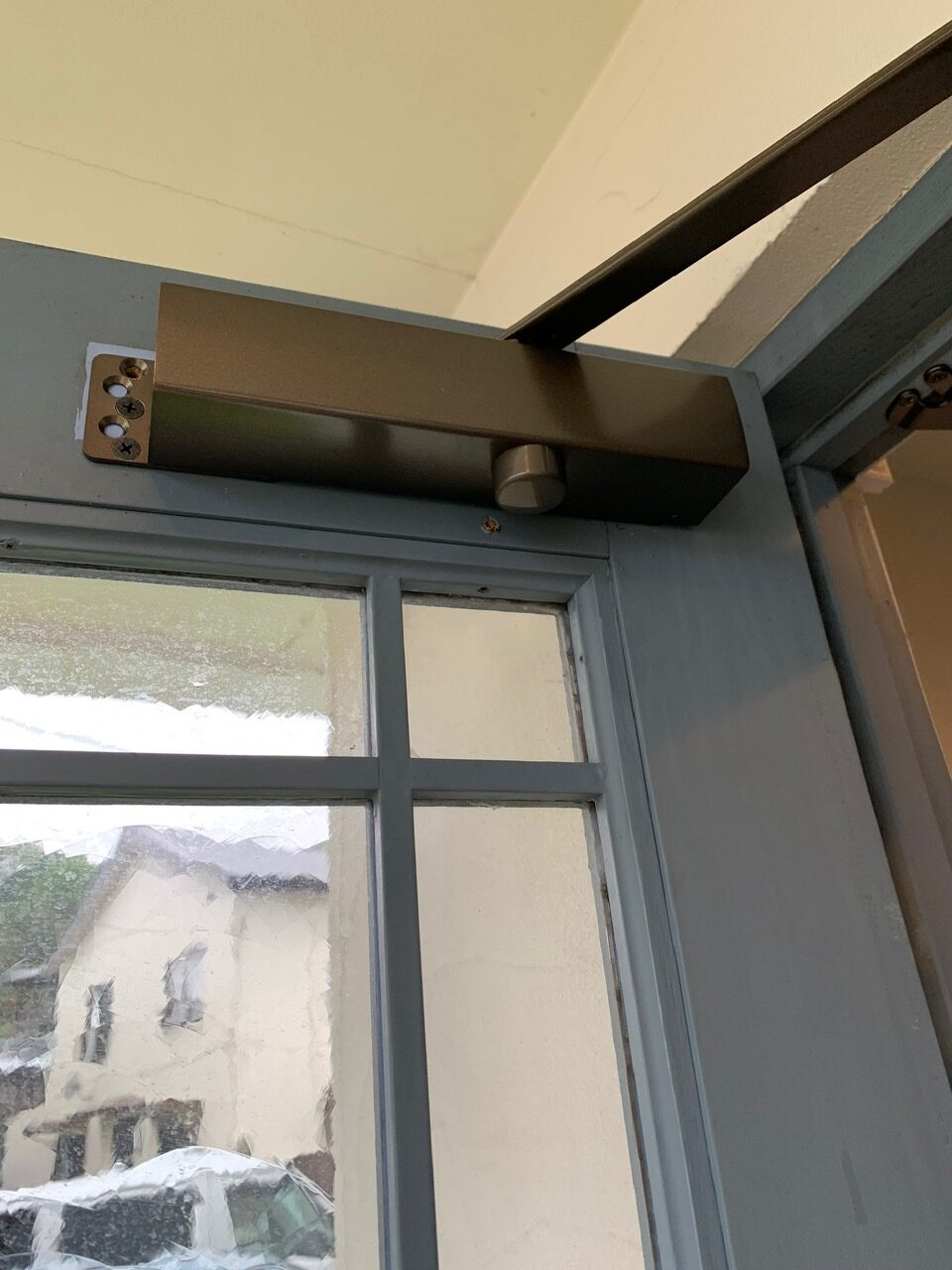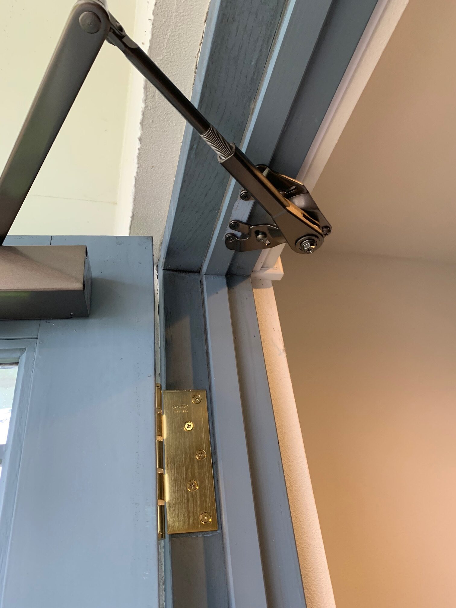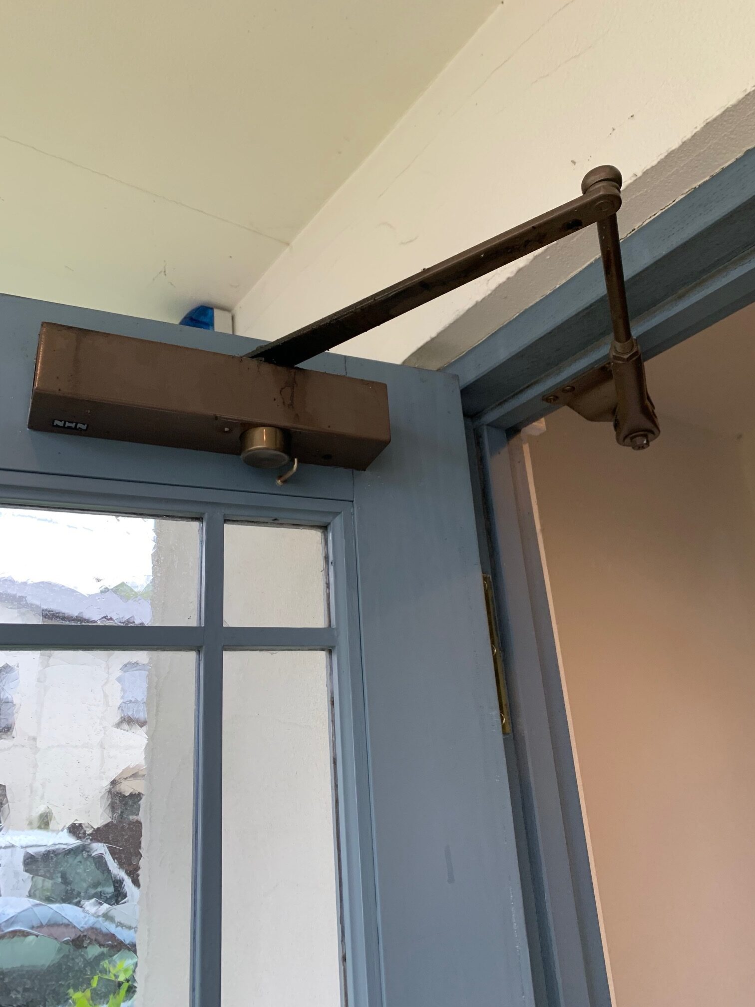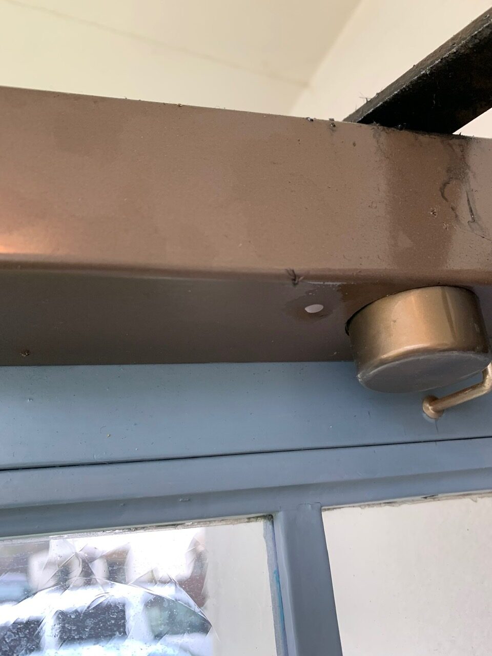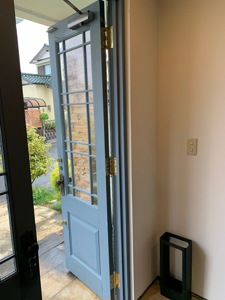 「開け閉めがしづらい」「変な音がする」とのご相談を頂きお伺いすると、ドアクローザーは経年劣化で油が漏れており、丁番も経年劣化で破損していましたので、こちらの玄関の丁番とドアクローザーの交換を行いました!